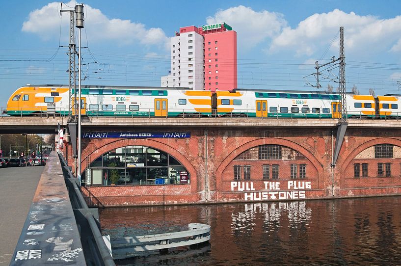 Achetez cette photo Passage d'un train sur le pont Michael à Friedrichshain par Silva Wischeropp sur toile, aluminium, ArtFrame ou photographie (encadrée), impression d'art en haute qualité et tout format.