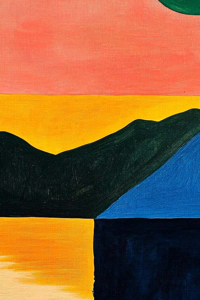 Une œuvre d'art vibrante et moderne qui capture un coucher de soleil serein dans des formes et des couleurs abstraites. Parfaite pour tout espace, cette composition associe des transitions douces à des contrastes puissants, ce qui la rend à la fois apaisante et dynamique. Cette œuvre d'art est idéale pour ceux qui recherchent un ajout contemporain à un intérieur, en y ajoutant une atmosphère et de la personnalité. Les couleurs, qui vont des roses chauds aux bleus profonds, permettent à la peinture de s'adapter à différents styles et goûts. Un véritable accroche-regard qui attire l'attention et inspire.