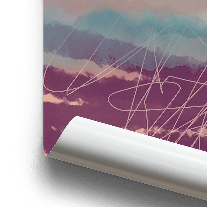 Paysage abstrait contemporain coloré en violet, rose néon et orange.