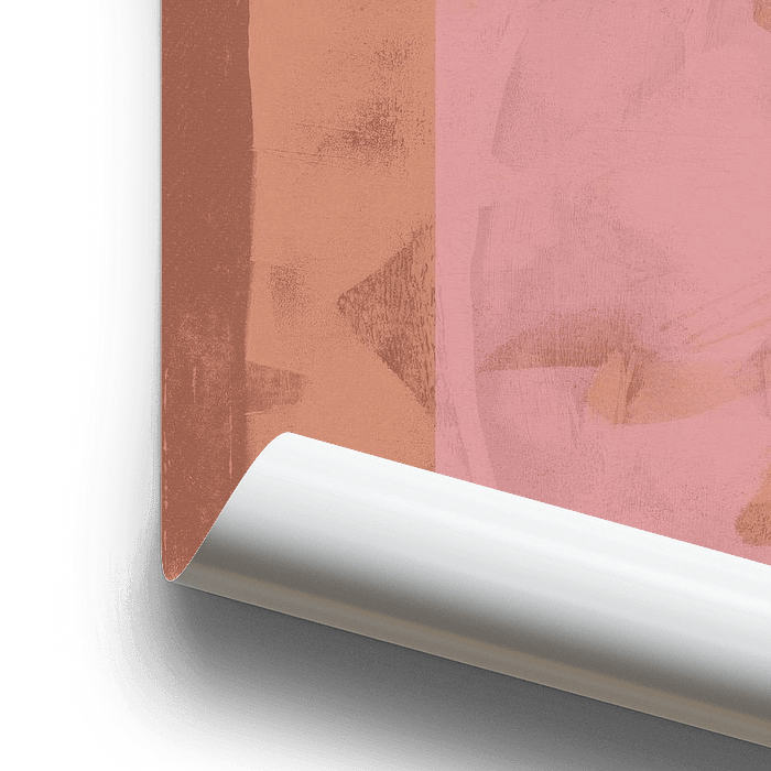 Collages de textures, de lignes et de formes en terracotta et en rose.
