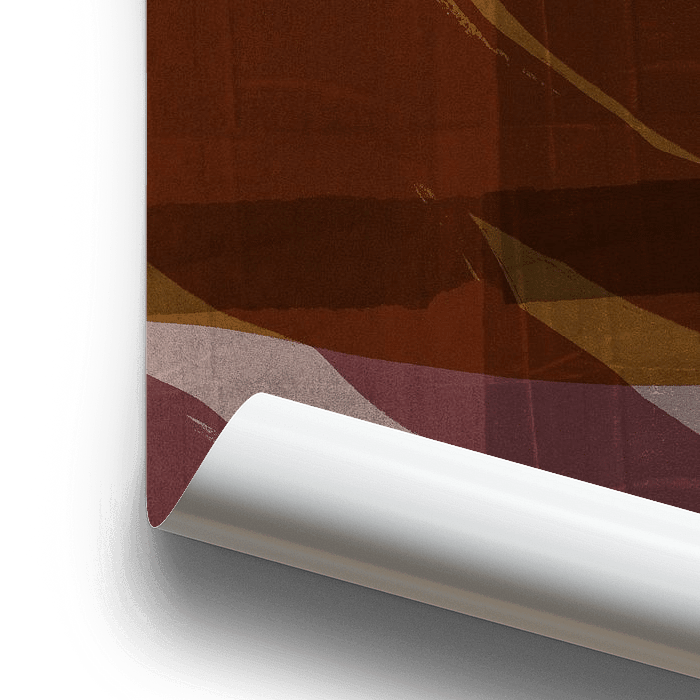 Paysage abstrait coloré en techniques mixtes. Textures monotypes, formes organiques, formes et lignes modernes, palette de couleurs chaudes d'inspiration rétro. Œuvre d'art pour un bureau, un salon moderne, une chambre ou un hall d'entrée. Eclectique, Design, Hôtel chique, Bohème, Intérieur rétro.