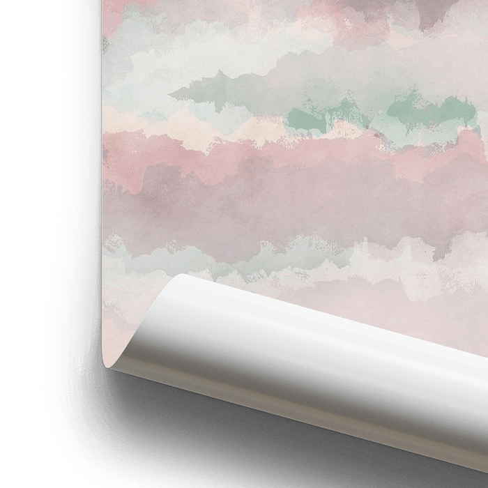 Paysage contemporain abstrait et coloré en blanc, rose et beige.