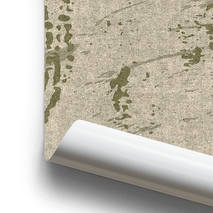 Peinture abstraite moderne en vert, blanc cassé et beige.