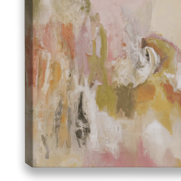 Peinture abstraite aux couleurs pastel avec principalement des tons jaunes, donnant à l'œuvre une sensation de printemps et une atmosphère ensoleillée. On ne se lasse pas d'une œuvre abstraite !