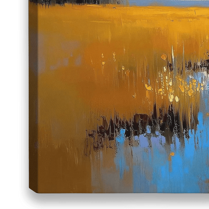 De keuze voor die twee elementen — het grasveld en de lucht — is geen toeval. Het grasveld schilderij vertelt het aardse, tastbare: textuur, geur, het knisperen van droge stengels; het lucht schilderij levert de adem en de verbeelding, ruimte en stilte. Samen vormen ze een klassiek landschap schilderij met een frisse twist: de kleuren zijn zuiver en soms onverwacht, de reflectie in het water brengt een kleine verrassing die het oog telkens terugtrekt. De compositie is zo ontworpen dat je blik van voorgrond naar horizon glijdt en weer omhoog naar die ene wolk — een rustig, bijna meditatief parcours.