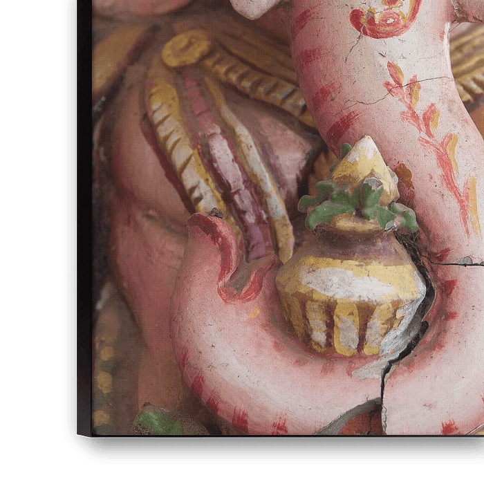 Ganesha est le dieu à tête d'éléphant de l'hindouisme. Il est le dieu de la connaissance et de la sagesse, élimine les obstacles et est le saint patron des voyageurs. Son véhicule est une souris ou un rat. Les hindous prient Ganesha avant de commencer quelque chose de nouveau, comme un nouvel emploi ou un déménagement. Ganesha est le fils du dieu Shiva et de la déesse Parvati, qui symbolisent ensemble l'unité de tout dans l'hindouisme. En Inde, une statue le représente souvent aux carrefours routiers, afin qu'il puisse aider les voyageurs lorsqu'ils doivent faire un choix et emprunter un nouveau chemin.