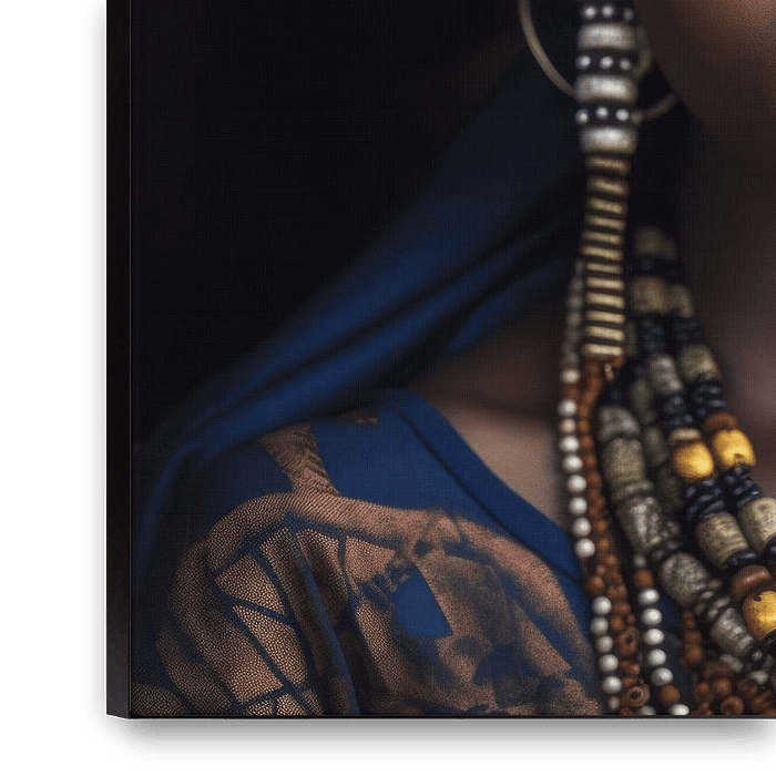 Portrait d'une femme africaine. Cette œuvre fait partie de la série "Tribus", voir l'album dans ma boutique pour d'autres portraits. Vous voyez une jeune femme africaine en habits traditionnels et portant des bijoux authentiques. Une belle œuvre pour votre mur ! Cette œuvre est produite numériquement. Elle peut ressembler à…