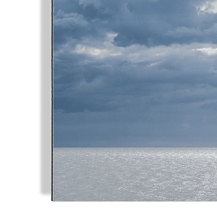 Un rayon de soleil est visible sur toute la largeur de la photo. Cet effet de lumière traverse les nuages et frappe l'eau, créant un reflet argenté à la surface. Le rayon de soleil crée une transition subtile entre le ciel et la mer et donne à la photo un jeu de lumière naturel.