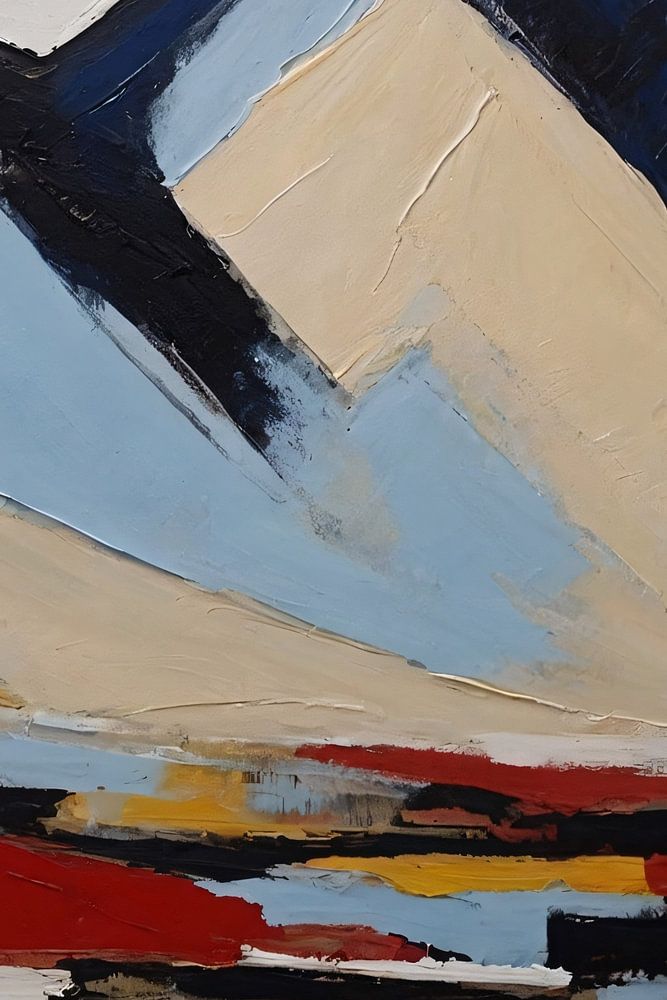 Découvrez une interprétation moderne de la grandeur de la nature avec cette œuvre expressive. Peint à l'aide de larges traits dynamiques, le paysage montagneux représenté capture l'essence de la montagne dans un jeu de formes abstraites. Les couleurs ont été soigneusement choisies pour créer de la profondeur et du contraste, les bleus froids et les blancs doux des pics montagneux contrastant fortement avec les jaunes et les rouges chauds des éléments d'eau qui se reflètent. Cette composition n'est pas seulement un hommage au monde naturel, mais aussi un chef-d'œuvre de l'art moderne qui dégage un sentiment de calme et de contemplation. Parfaite pour un salon ou un bureau contemporain, cette œuvre d'art apporte une touche sophistiquée et constitue un sujet de conversation qui stimule l'imagination et promet une exploration sans fin.