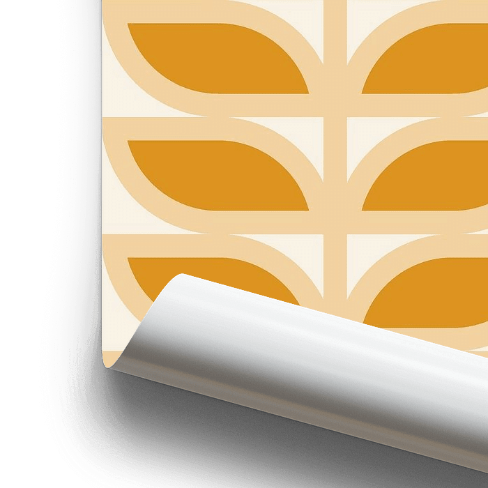 Rétro scandinave. Oiseaux et feuilles en jaune naturel et blanc par Dina Dankers
