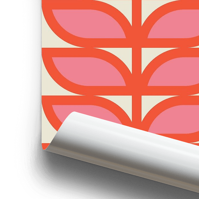 Rétro scandinave. Oiseaux et feuilles en rose, rouge et blanc cassé. par Dina Dankers