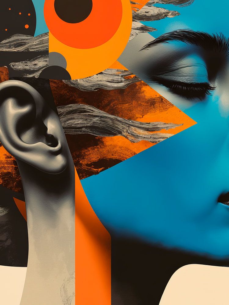 Les accents bleus et orange dansent avec des lignes fluides et des textures subtiles, tandis que l'arrière-plan onirique évoque un sentiment de tranquillité et de mysticisme. Parfait pour ceux qui aiment le design moderne avec une touche de fantaisie !