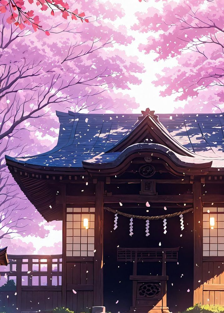 sanctuaire de pétales, sanctuaire de sakura, esprit hanami, Japon intemporel, révérence des fleurs, lanternes de fleurs de cerisier, printemps spirituel