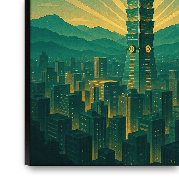Achetez cette œuvre d'art de paysage Taipei Skyline Elegance - Art Deco Taipei 101 Poster par Travel Shop sur toile, aluminium, ArtFrame ou photographie (encadrée), impression d'art en haute qualité et tout format.