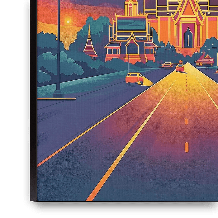 Acheter ce illustration Thailand Night Glow : Affiche du paysage urbain des temples par Travel Shop sur toile, aluminium, ArtFrame ou photographie (encadrée), impression d'art en haute qualité et tout format.