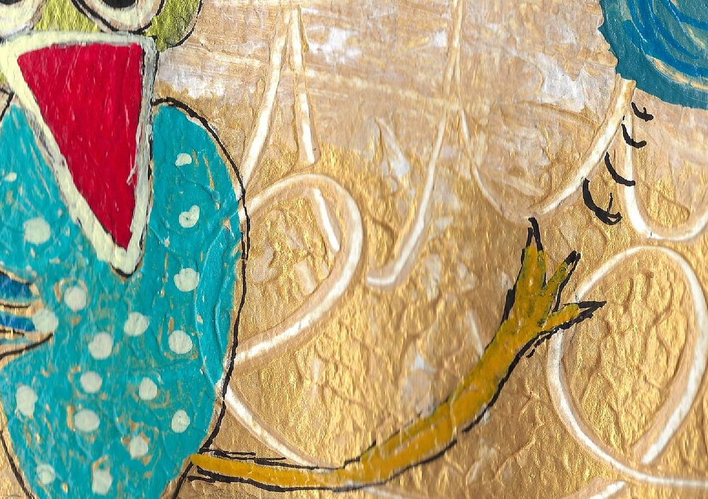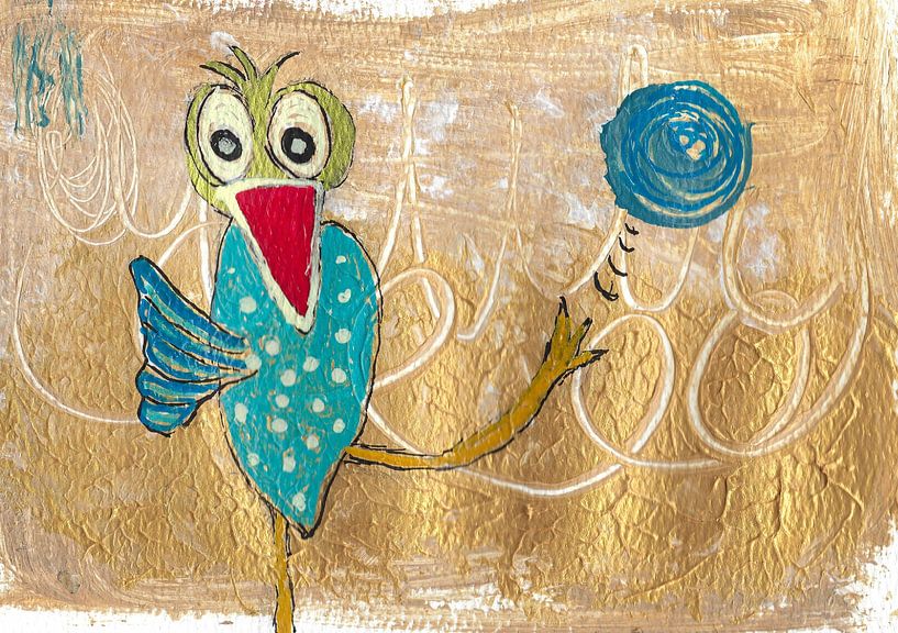 Cet oiseau joyeux et abstrait, Jaap, semble être en plein milieu d’une partie de « Tikkie Terug ». C’est exact ! Regardez mon autre tableau 'Vogel met strandbal' Avec ses grands yeux curieux et son attitude enjouée, Jaap…