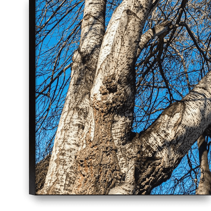 Tronc d'arbre dénudé Branches d'eucalyptus en hiver