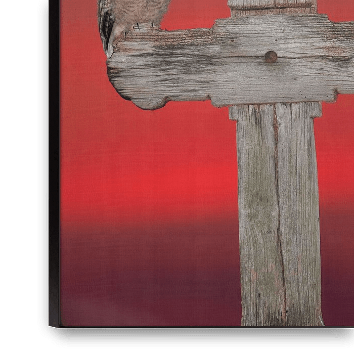 Twee jonge Ransuilen zittend op een kruis met mooie zonsondergang