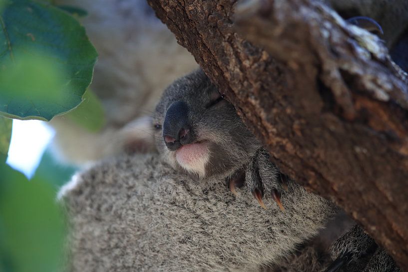 Achetez cette photo Un bébé koala et sa mère assis dans un arbre à gomme sur Magnetic Island, Queensland Australie par Frank Fichtmüller sur toile, aluminium, ArtFrame ou photographie (encadrée), impression d'art en haute qualité et tout format.
