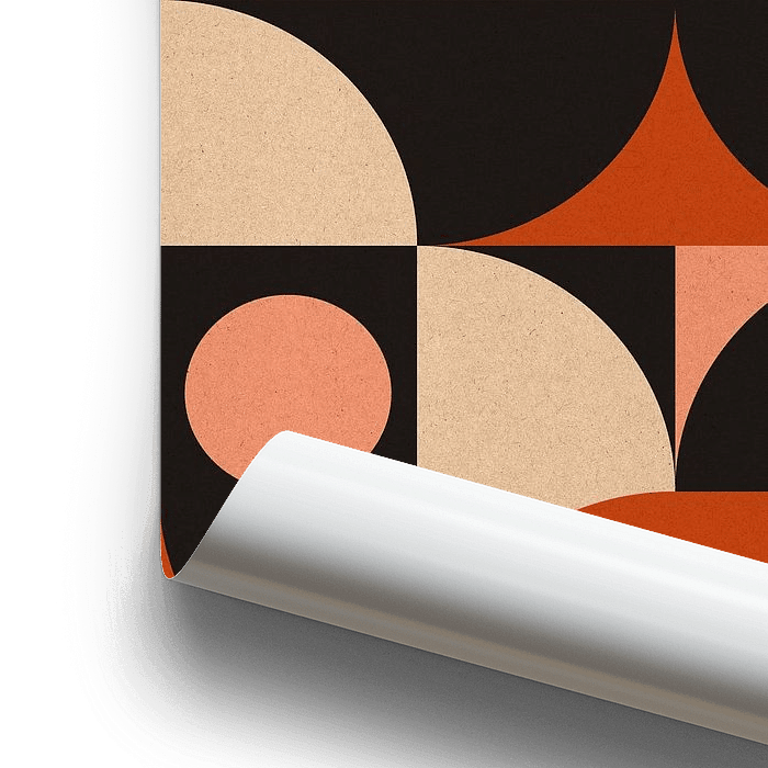 À propos de ‘Vie rétro des années 70. Art géométrique abstrait en noir, orange brûlé, blanc III’ par Dina Dankers