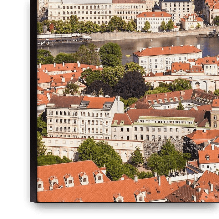 Vue panoramique sur la Petite Ville et la Vieille Ville ainsi que sur la Vltava avec le pont Charles à Prague, République tchèque.