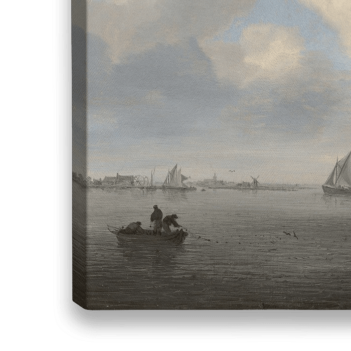 Le sujet préféré de Salomon van Ruysdael était le paysage aquatique hollandais avec ses rivières, ses étangs et ses lacs. Il l'a peint de nombreuses fois, en suivant souvent le même modèle. Il a placé l'horizon bas et les nuages au-dessus en diagonale. De cette façon, il a créé une grande sensation d'espace et de profondeur dans un petit format. Salomon van Ruysdael était l'oncle de Jacob van Ruisdael, qui est devenu encore plus célèbre en tant que peintre paysagiste.