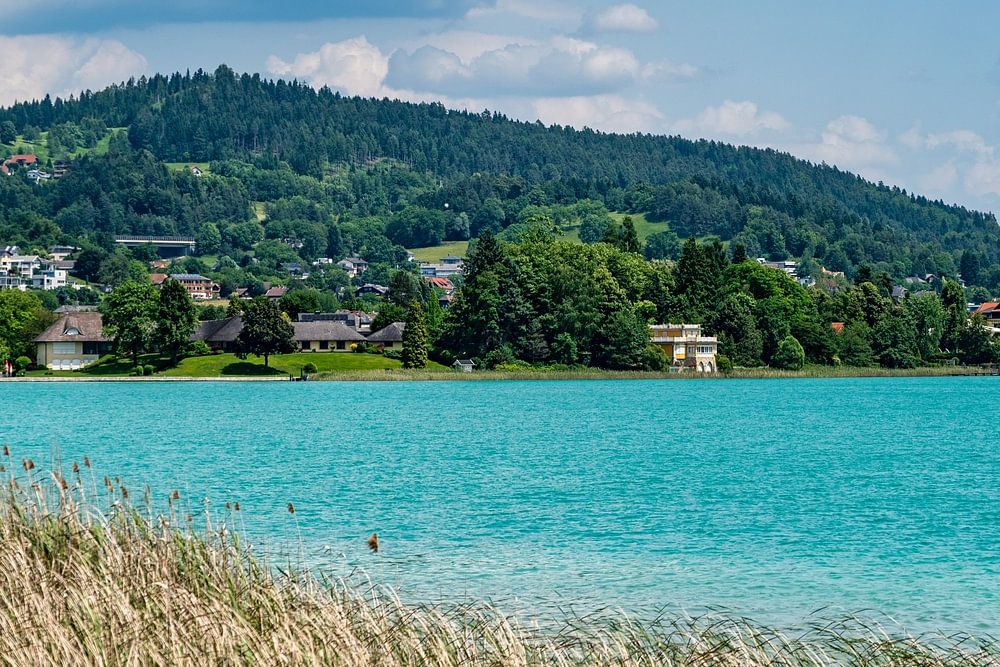 Achetez cette photo Vue sur le Woerthersee par Andreas Völkel sur toile, aluminium, ArtFrame ou photographie (encadrée), impression d'art en haute qualité et tout format.