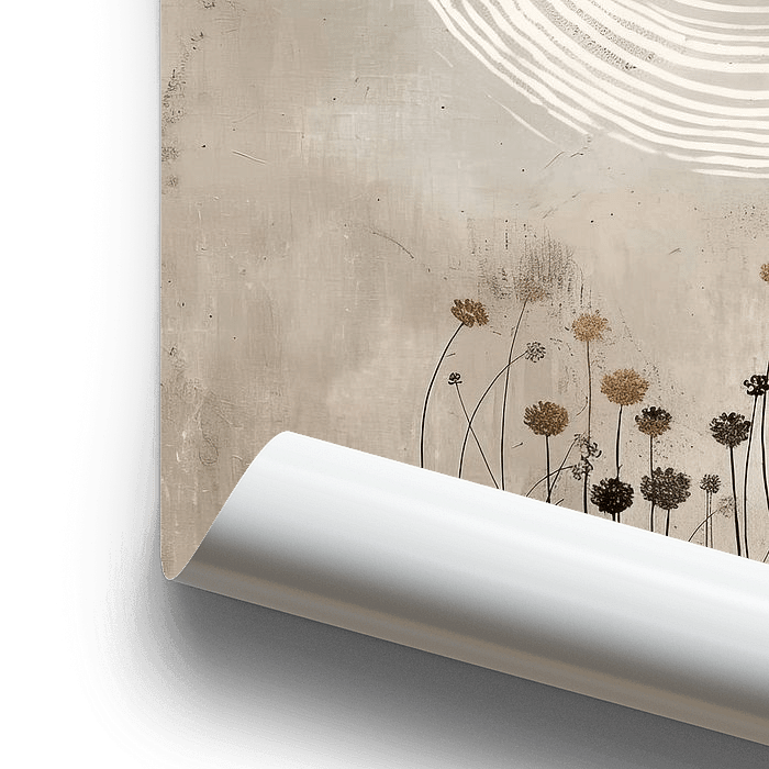 Wabi-sabi, abstraction botanique dans les tons de terre. Dans l'esthétique japonaise traditionnelle, le wabi-sabi est une vision du monde centrée sur l'acceptation de l'impermanence et de l'imperfection. Cette esthétique est parfois décrite comme l'appréciation de la beauté qui est 'imparfaite, impermanente et incomplète'dans la nature. On la retrouve dans de nombreuses formes d'art japonais.