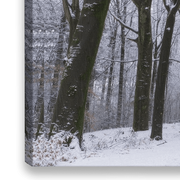 Des conditions magnifiques sur le domaine de Prattenburg près de Veenendaal (Utrecht, Pays-Bas). Après de fortes averses de neige, la forêt est devenue d'un blanc féerique ! L'allée forestière semblait déserte ; la forêt est silencieuse.