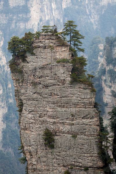 L'un des nombreux piliers de grès dans le parc naturel chinois Wulingyuan Scenic Area près de la ville de Zhangjiajie dans la province du Hunan.