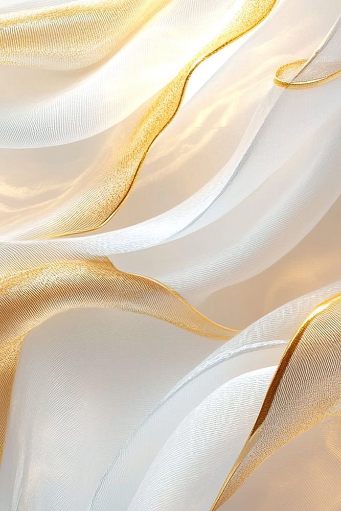 Papier peint 3D avec lignes dorées, fond blanc, haute résolution, haute définition, 2K, détails précis, bords et coins lisses, tissu de soie blanc avec des vagues, des courbes fluides et des motifs dorés sur la surface. Le papier peint est conçu dans un style élégant, avec une touche de luxe. Illustrations texturées haut de gamme. Un design simple mais puissant qui ajoute de la sophistication à n'importe quel espace.