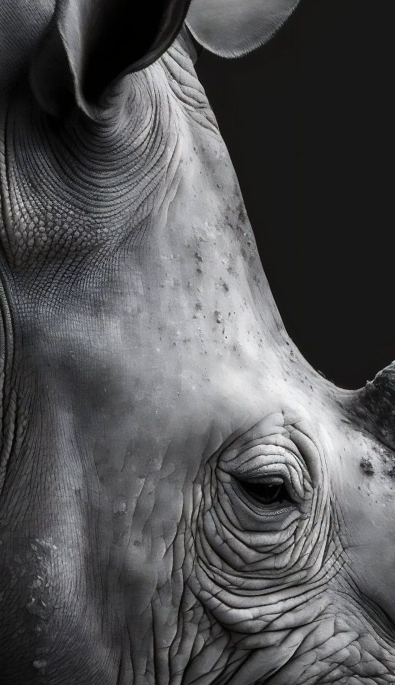 une des images d'une série de portraits en profil de certains des plus grands du règne animal. Créée avec Ai et éditée dans Photoshop. Représentée en noir et blanc pour une image impressionnante et classique.