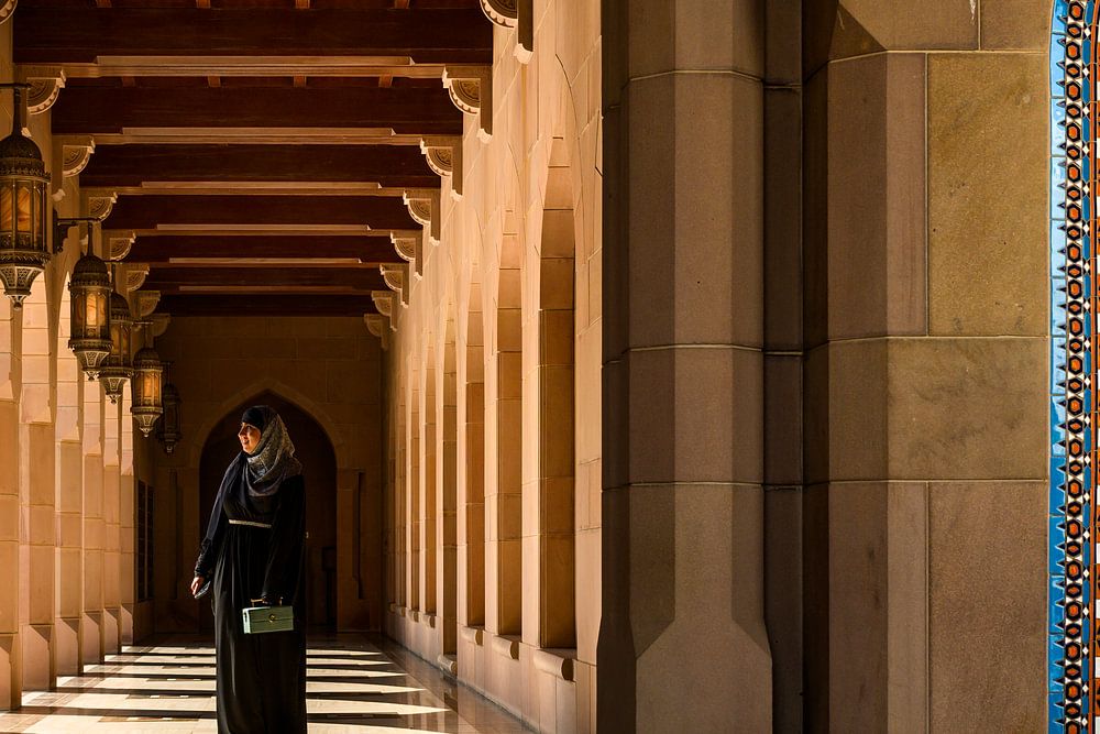 femme à la grande mosquée du sultan Qaboos à Mascate par Paula Romein