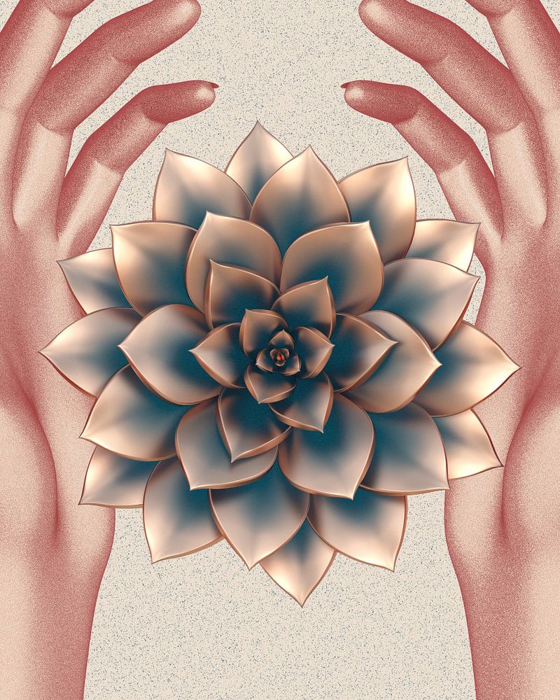Achetez cette œuvre d'art florale mains en or rose et succulentes par Klaudia Kogut sur toile, aluminium, ArtFrame ou photographie (encadrée), impression d'art en haute qualité et tout format.
