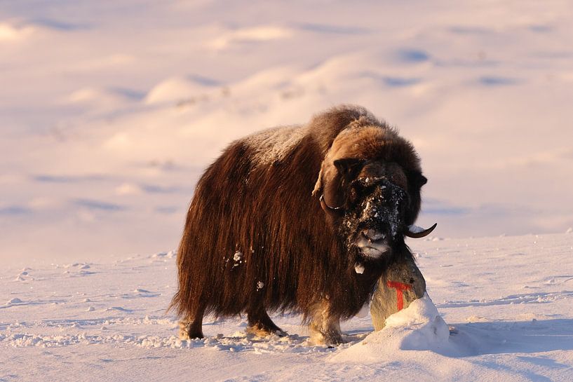 Achetez cette photo musk ox dans la première lumière du matin en hiver dans le parc national de Dovrefjell-Sunndalsfjell par Frank Fichtmüller sur toile, aluminium, ArtFrame ou photographie (encadrée), impression d'art en haute qualité et tout format.