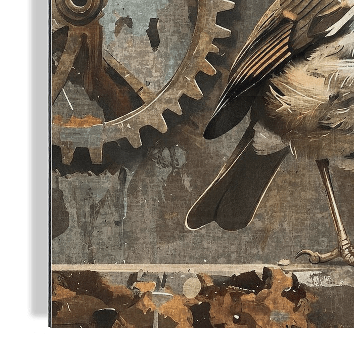 Un rouge-gorge près d'une horloge, œuvre d'art vintage aux couleurs chaudes