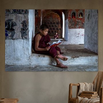 • Photo de nos clients: Baghan Myanmar, jeune moine étudiant dans un monastère bouddhiste. (vu à vtwonen) par Wout Kok, sur toile