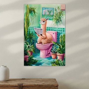 • Photo de nos clients: Highlander écossais dans une baignoire vintage rose avec un canard en caoutchouc dans un intérieur ensoleillé par But First Framing, sur ArtFrame