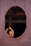 Photo de nos clients: Jeune moine dans la fenêtre ovale par Carolien van den Brink, sur toile