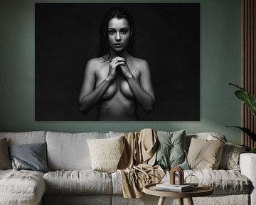 "Serenity in Shadow - Portrait of Stillness" (Sérénité dans l'ombre - Portrait d'une femme nue couverte) par Retinas images
