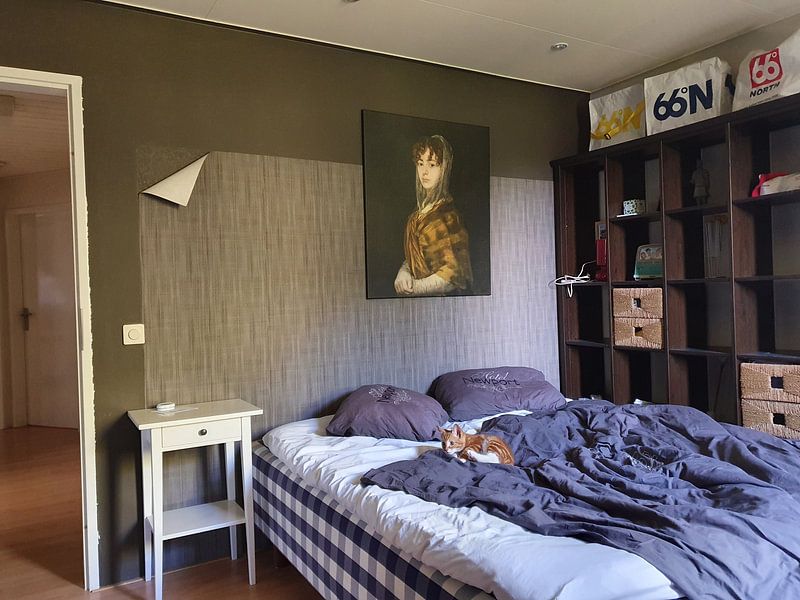 Vous optez pour du papier peint ? Vous profitez alors de deux avantages majeurs. D'abord, vos détails restent nets et les couleurs éclatantes même en très grand format : les tons marron, taupe et or de Francisco de Goya gardent toute leur intensité sur un mur entier. Ensuite, vous transformez n'importe quelle pièce en un véritable point d'attention. Cette solution convient particulièrement bien aux œuvres calmes et élégantes de ce peintre espagnol, car elle leur donne l'espace nécessaire pour créer une atmosphère puissante sans effort.
