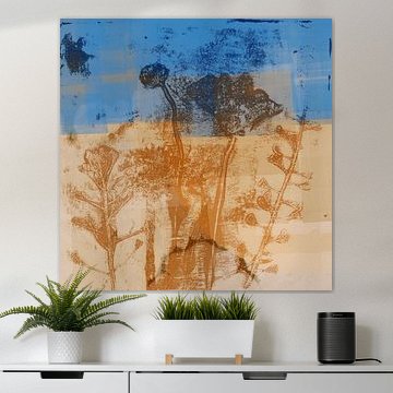 Art botanique abstrait moderne. Forêt de conte de fées. Feuilles en bleu rouille par Dina Dankers