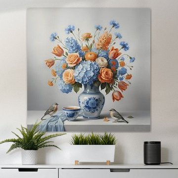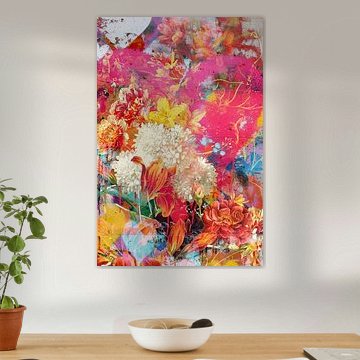 Les compositions florales apportent une touche vivante dans les pièces calmes. Dutch Love avec ses couleurs vives fonctionne bien dans un salon ou une salle à manger, où les détails colorés des fleurs et des papillons créent un point d'attention.