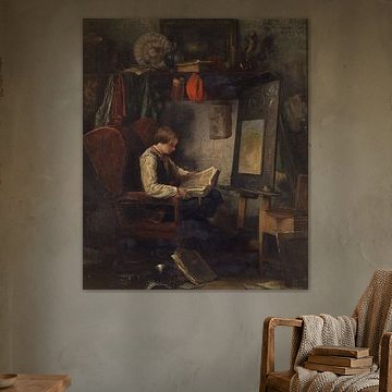 • Photo de nos clients: Intérieur avec la femme de l'artiste debout devant une commode en train de lire, Carl Holsøe, sur ArtFrame