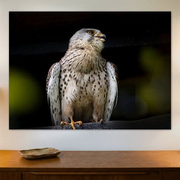 Placez vos œuvres de rapaces à environ 1,50 m du sol pour créer un contact visuel naturel. Les yeux perçants des oiseaux captent ainsi mieux l'attention. Cette hauteur convient particulièrement bien pour Harfang des neiges (Bubo scandiaca), dont le regard intense de la chouette harfang crée une présence forte dans votre intérieur.