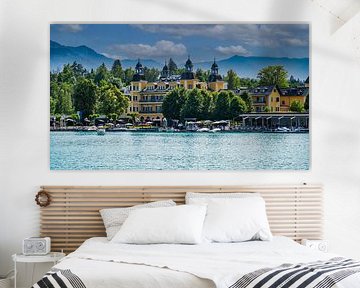 Vue de la promenade au bord du lac à Velden, sur le magnifique lac Woerthersee.