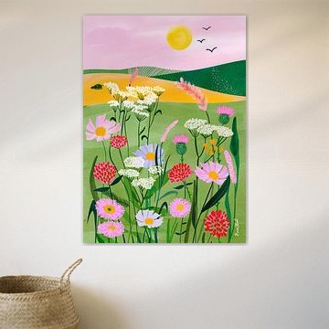 Fleurs pliées avec paysage de ciel rose par Baroo Bloom