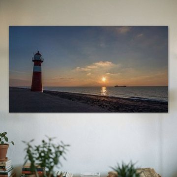 Zonsondergang met vuurtoren par Marcel Klootwijk