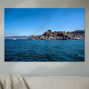Moment de calme sur la mer Égée avec des rochers sombres au premier plan par Miranda van Hulst